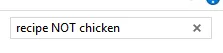 예를 들어, 저장한 레시피 문서에 recipe라는 단어가 있다는 것을 알고 있지만 치킨 레시피는 원하지 않는 경우 'recipe NOT chicken' 명령을 사용할 수 있습니다 .