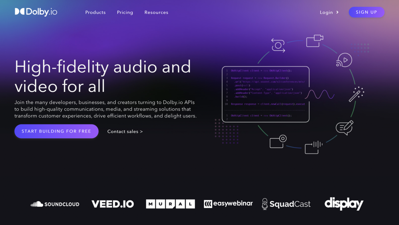 3. Dolby.io — 실시간 스튜디오 품질 웹 오디오