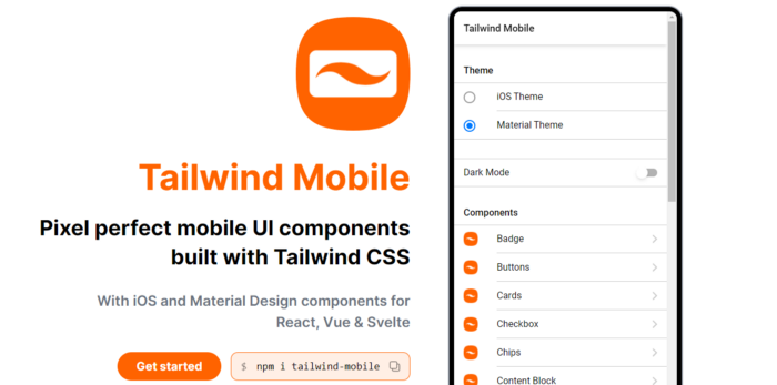 Tailwind Mobile 은 Tailwind CSS를 사용하여 구축된 유용한 모바일 UI 구성 요소와 함께 제공되는 멋진 리소스입니다.