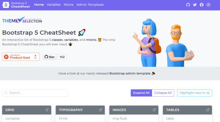 이 웹사이트 는 다음 프로젝트에서 사용할 수 있는 유용한 Bootstrap 5 클래스, 믹스인 및 변수 목록을 선별합니다.
