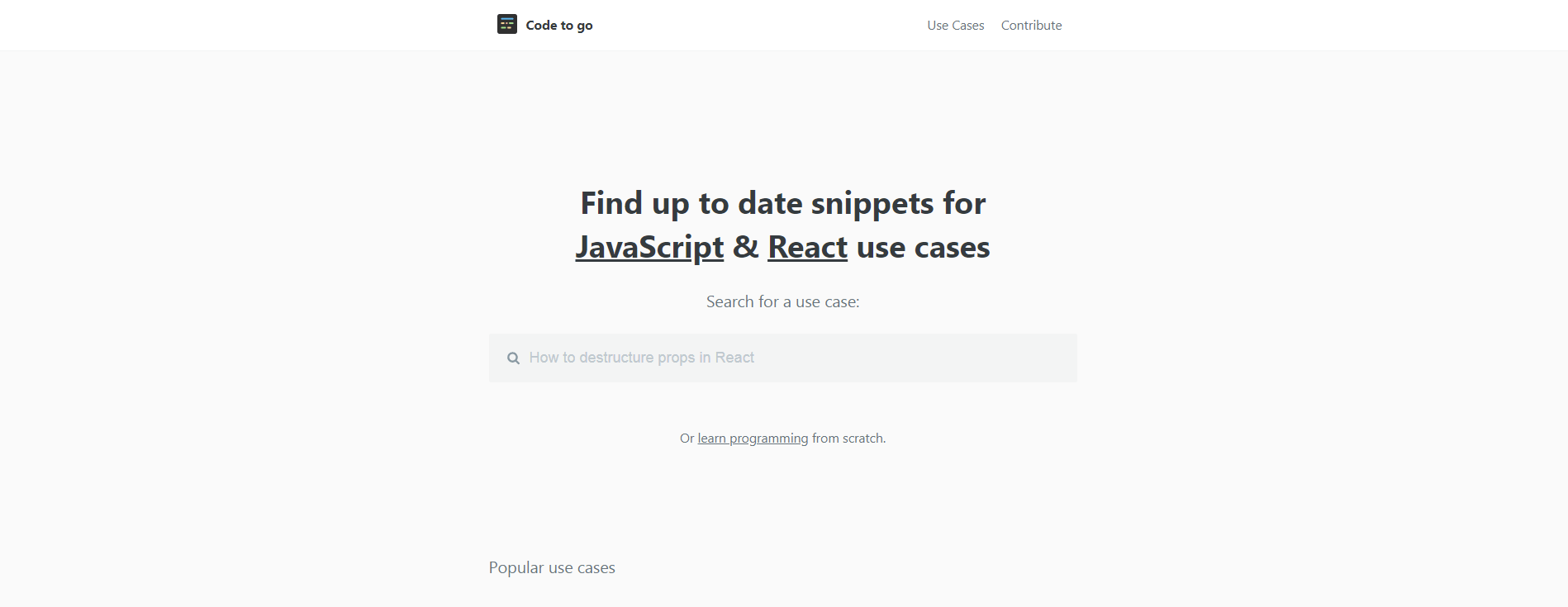 Code to go는 Javascript와 같은 인기 있는 프로그래밍 언어의 모음 코드 조각입니다.... 웹 개발의 일반적인 문제를 해결하는 데 도움이 되는 곳입니다. 2020년에 저자는 React 프레임워크를 전문으로 하는 사람들을 위해 코드 스니펫과 팁을 추가했습니다. 또한 Javascript 프로그래밍 언어로 기초부터 고급까지 프로그래밍을 배우고자 하는 사람들을 위한 무료 과정도 있습니다.